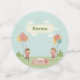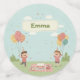 A soft, sweet, and nostalgic illustration design depicting a cheerful birthday celebration outdoors. The illustration features smiling children with party hats, a small cake on a checkered picnic blanket, gifts, and colorful balloons. The top section includes a blank space for adding a name, age, or event details. The balloons are styled as numbers. The overall style is colorful, retro-modern, and warm, perfect for any children's event or age celebration.