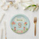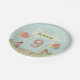 A soft, sweet, and nostalgic illustration design depicting a cheerful birthday celebration outdoors. The illustration features smiling children with party hats, a small cake on a checkered picnic blanket, gifts, and colorful balloons. The top section includes a blank space for adding a name, age, or event details. The balloons are styled as numbers. The overall style is colorful, retro-modern, and warm, perfect for any children's event or age celebration.