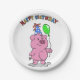 Birthday Pig cartoon | choose background colour Paper Plate
