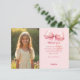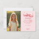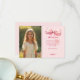 A birthday Thank You photo card. A pink background. Decorated with a large pink bow. Personalise and add your photo and thank you note.