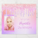 A sparkling wine label for a girly and glamourous 21st (or any age) birthday party. A rainbow coloured background in pink and purple. Drips, paint dripping look. Personalise and add your own photo of the birthday girl. The text: The name is written in purple with a modern hand lettered style script. Template for name, age 21 and a date.
