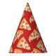 These festive paper party hats feature a repeating pattern or slices of pepperoni pizza dripping with cheese and are ready for your next pizza party.
