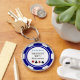 This navy blue and white poker chip style keychain would make a perfect gift for either the birthday boy, or, for the whole party as a gift! Personalise your design with a name and birth date # in black in the centre, and your custom text in blue on top.
