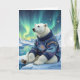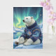 Birthday Polar Bear Sitting Under Northern Lights Card