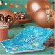 Swimming pool water with beach ball splash in turquoise water for any age birthday party.