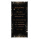 Birthday party program on the front and a quix, game on the back. Personalise and add a name, age, date, program on the pront and a quiz on the back. A chic black background, decorated with faux glitter dust. Golden coloured letters.