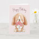 Birthday Puppy Dog with Flowers Card