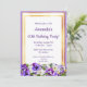Birthday purple florals gold white invitation