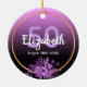 Birthday purple florals monogram name ceramic tree decoration