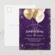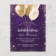 Birthday purple gold glitter balloons invitation postcard