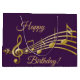 Girly and feminine dark purple background with faux gold music notes. With the text: Happy Birthday! Golden hand lettered style script.