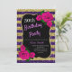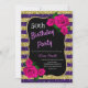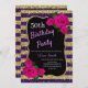 Birthday Purple Gold Stripes Glitter Pink Roses Invitation