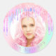 Birthday rainbow glitter drips custom photo pink classic round sticker