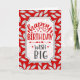 A bright and bold, yet simple message birthday greeting perfect to have on hand for the 'emergency' card need. Red and white with black accents in a leafy print and modern styling.