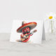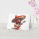 A whimsical cartoon chilli pepper character is depicted wearing a large sombrero and playing a guitar.