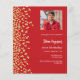 A modern, elegant and invitation. A red background decorated with faux gold confetti. Personalise and add photo, a name and party details. White text.