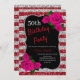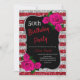 Birthday Red Silver Stripes Glitter Pink Roses Invitation