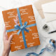 Trendy party wrapping paper. A burnt orange coloured background, white text.