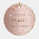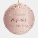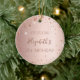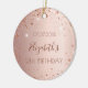 An ornament for a girly and glamourous 21st (or any age) birthday. A rose gold background with faux glitter dust. Personalise and add a date, name and age 21. The name is written in dark rose gold with a modern hand lettered style script. Perfect as party decoration, favour, keepsake or as a gift.
