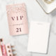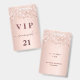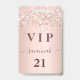 A modern, stylish and glamourous badge for a 21st (or any age) birthday party. A modern, stylish and glamourous badge for a 21st (or any age) birthday party. A rose gold background with rose gold confetti. With the text: VIP. Personalise and add name, age, address/date. The name is written with a modern dark rose gold coloured hand lettered style script with swashes.