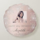 Birthday rose gold blush silver glitter name photo round cushion