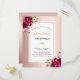 An elegant card for a 50th (or any age) birthday party. A chic rose gold background with a simple rose gold and white frame. Decorated with florals, roses in burgundy and rose gold. Personalise and add a name and party details. The name is written with a hand lettered style script. Black and golden letters.