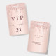 A modern, stylish and glamorous badge for a 21st (or any age) birthday party. A rose gold background with drips, paint drip look. The name is written with a modern dark rose gold colored hand lettered style script with swashes. With the text: VIP Number 21 is written in a golden color. To keep the swashes only delete the sample name, leave the spaces or emoji's in front and after the name.