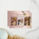 Add 3 of Your birthday photos, vertical size, a date, name, and the thank you note. A rose gold faux metallic looking background with black text and frame, a golden eucalyptus sprig. The text: Thank you on the front and your name on the back are written with a stylish hand lettered script with swashes.