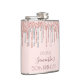 A gift for a girly and glamourous 50th (or any age) birthday party. A light rose gold, pink background with elegant faux rose gold and silver glitter drips, paint drip look. The text: The name is written in dark rose gold with a large modern hand lettered style script. Personalise and add a name, age 50 and a date. Add your own message and names on the back: