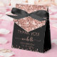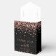 Girly Elegant Modern Rose Gold Glitter Monogram Name Signature Script Custom Personalised 30th (or any age) birthday Thank You Favour Box. This design featuring your first name in a pretty hand lettered style swash tail font signature typography (or calligraphy) above faux rose gold glitter on black background. These stylish girly feminine gift boxes great for handing out, gifts, guest gifts and treats during an upcoming birthday party, sweet 16 birthday, baby shower, BBQ, bridal shower, wedding reception, bachelorette party, anniversary and more.