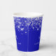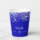 For a glamourous and girly for a 21st (or any age) birthday party. A royal blue background. On the front and the back: Personalise and add a name, age 21 and a date. Decorated with faux silver glitter dust. White coloured text.