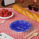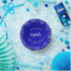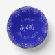 A paper plate for a girly and glamourous 18th (or any age) birthday party. A chic royal blue background with faux silver glitter, sparkles. The text: The name is written with a large modern hand lettered style script. Personalise and add a date, name and age.
