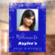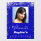 A welcome decal for a girly and glamourous 30th (or any age) birthday party. A royal blue background with elegant faux silver sparkles. Personalise and add a photo, name and age 30. White letters.