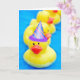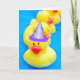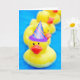 Yellow ducks floating in a swimming pool with a birthday party hat for any age birthday.