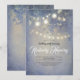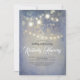 Dreamy summer night rustic string of lights dusty blue birthday party invitations