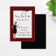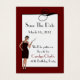 Pretty Art Deco style Save the Date birthday announcements, done in red, black, and white. Lovely digital artwork of a roaring 20's flapper decorates the bottom left of the card, with a dark red frame around the white text area and a black decorative scroll flourish at the top. Text in black and red is fully customisable to suit your needs.