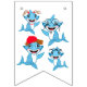 Funny blue sharks for birthdays, blue and white shades bunting flags