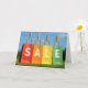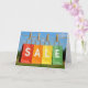 Four colorful shopping bags spelling 'SALE' dangle from a clothesline, beautifully contrasting with the natural scenery behind them.