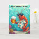A cheerful shrimp wearing sunglasses and a floral shirt enjoys a frothy beer underwater, surrounded by colourful coral and seaweed.