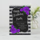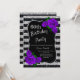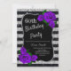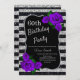 Birthday Silver Black Stripes Glitter Purple Roses Invitation