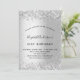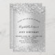 For an elegant 21th (or any age) birthday party. A faux silver metallic looking background. Decorated with faux glitter. Personalise and add a name and party details. The name is written with a hand lettered style script