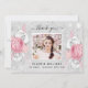 Birthday silver glitter pink floral photo thank you card