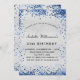 For an elegant 21st (or any age) birthday. A faux silver looking background. Decorated with navy blue confetti. Personalise and add a name, age and party details. The name is written with a hand lettered style script