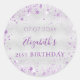 For an elegant 21st (or any age) birthday. A faux silver metallic looking background. Decorated with purple faux glitter dust. Personalise and add a date, name and age 21.