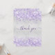 Birthday silver purple glitter dust thank you card