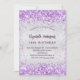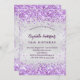For an elegant 18th (or any age) birthday party. A faux silver looking background. Decorated with purple, violet faux glitter, sparkles. Personalize and add a name and party details. The name is written with a hand lettered style script