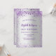 A girly and feminine 21st (or any age) birthday party invitation. On front: A trendy faux silver looking background. Decorated with dark purple and violet faux glitter, sparkles. Personalise and add a name, party details. The name is written with a hand lettered style script, purple coloured letters.