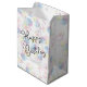Abstract iridescent soap bubble pattern on a white background with Happy Birthday text.