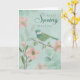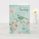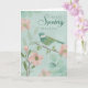 Celebrate a special birthday with nature-inspired card featuring pink flowers and a brightly hand drawn bird perched on a leafy branch.