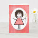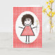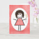 Birthday Stick Figure Girl On Red Gingham Card